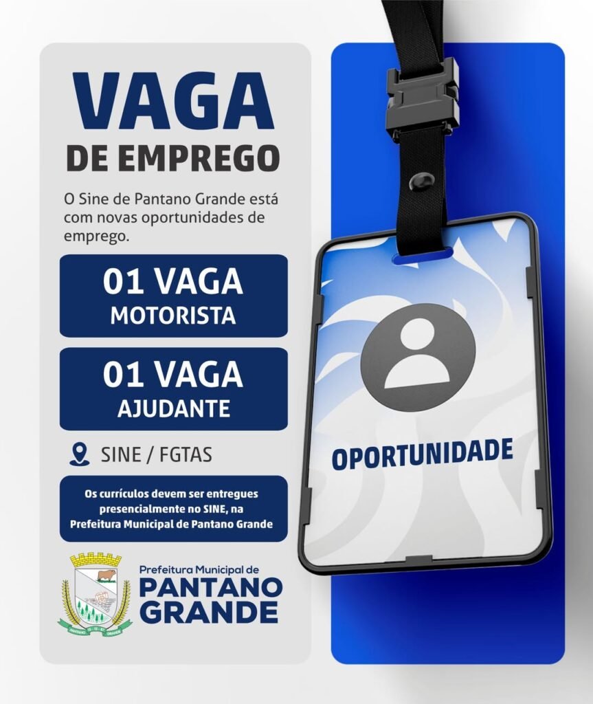 Semana de oportunidades de emprego no Sine Municipal de Pantano Grande