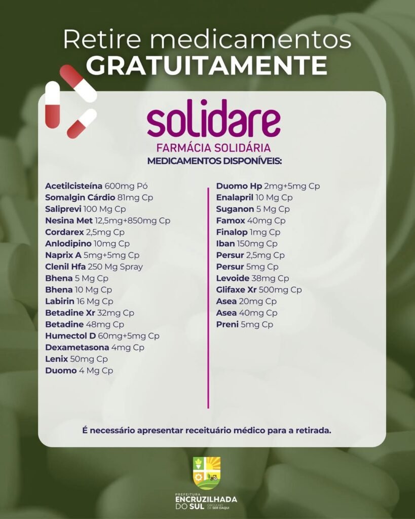 Farmácia Solidare oferece medicamentos gratuitos em Encruzilhada do Sul