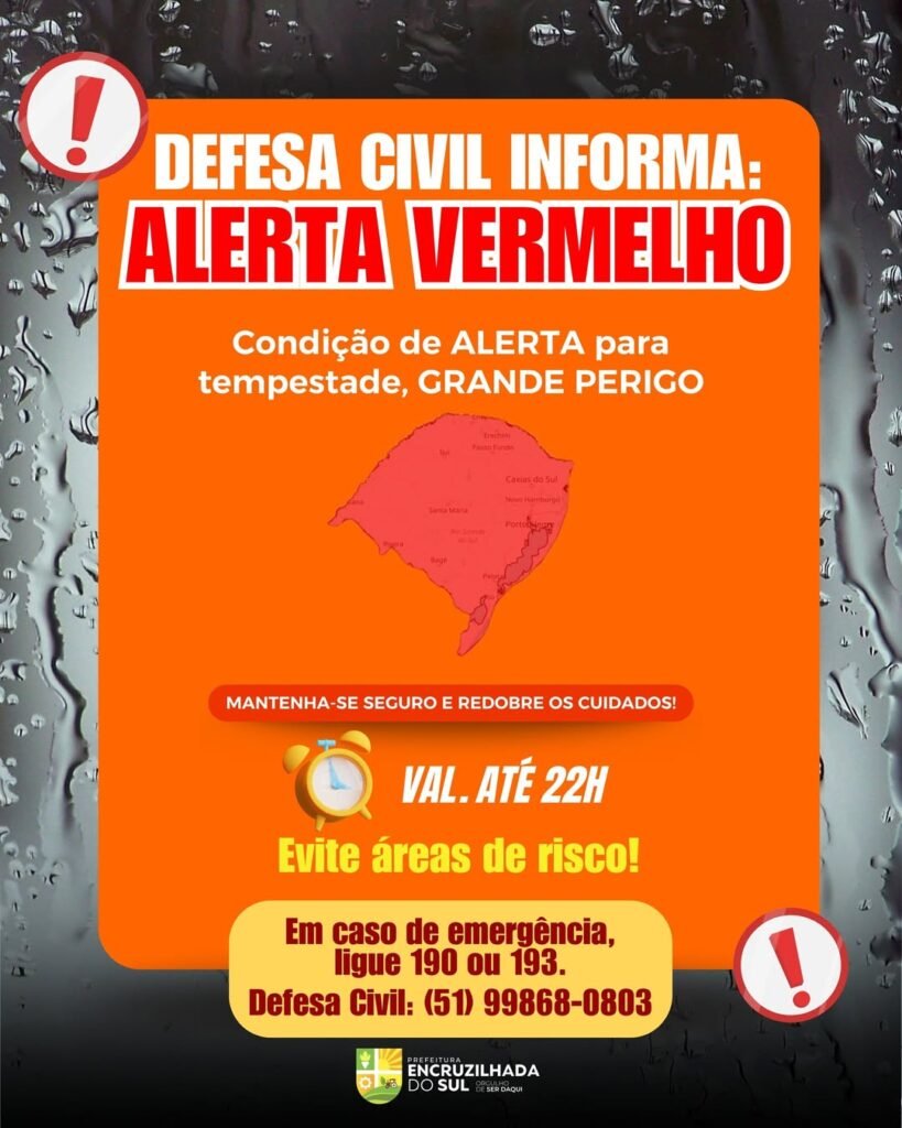 Alerta vermelho em Encruzilhada do Sul devido a tempestades